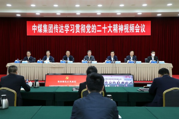 10月27日上午,中煤集團(tuán)黨委召開(kāi)傳達(dá)學(xué)習(xí)貫徹黨的二十大精神視頻會(huì)議,對(duì)集團(tuán)公司系統(tǒng)抓好學(xué)習(xí)宣傳和貫徹落實(shí)工作進(jìn)行動(dòng)員部署。黨的二十大代表,中煤集團(tuán)黨委書記、董事長(zhǎng)王樹(shù)東傳達(dá)宣講黨的二十大精神并講話,中煤集團(tuán)黨委副書記、總經(jīng)理彭毅主持會(huì)議,集團(tuán)領(lǐng)導(dǎo)廖華軍、葛民、趙榮哲、倪嘉宇、馬世志出席會(huì)議。