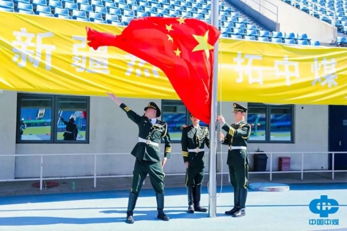 開(kāi)幕式伊始,國(guó)旗護(hù)衛(wèi)隊(duì)擁著鮮艷的五星紅旗踏步而來(lái),緊跟國(guó)旗之后的是中國(guó)中煤司旗、司徽,寓意中國(guó)中煤緊跟國(guó)家步伐,把握時(shí)代脈搏,發(fā)展勢(shì)頭迅猛。